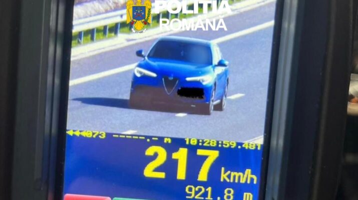 Un bărbat de 32 de ani, din județul Argeș, a rămas fără permisul de conducere timp de patru luni și a fost amendat cu 1822 de lei, după ce a fost prins conducând cu 217 km/h, pe Drumul Expres Craiova Pitești.